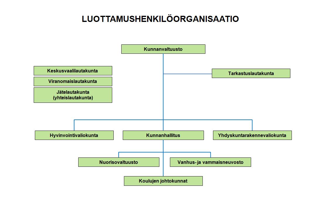 Kunnan ylin päättävä elin on valtuusto, jonka jäsenet valitaan neljän vuoden välein järjestettävillä kuntavaaleilla. Valtuusto valitsee jäsenet kunnanhallitukseen, jonka tehtävänä on valmistella valtuuston päätökset ja panna ne täytäntöön.