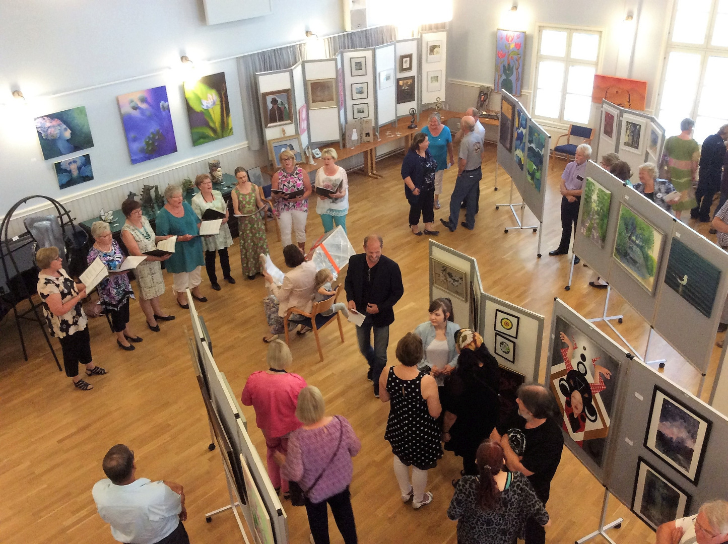 Taulukiskoin varusteltua yläkerran kokoustila Simoa ja yläaulaa (47 m²) vuokrataan näyttelytiloiksi.