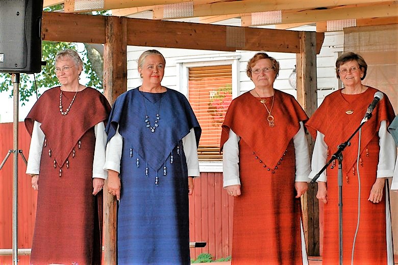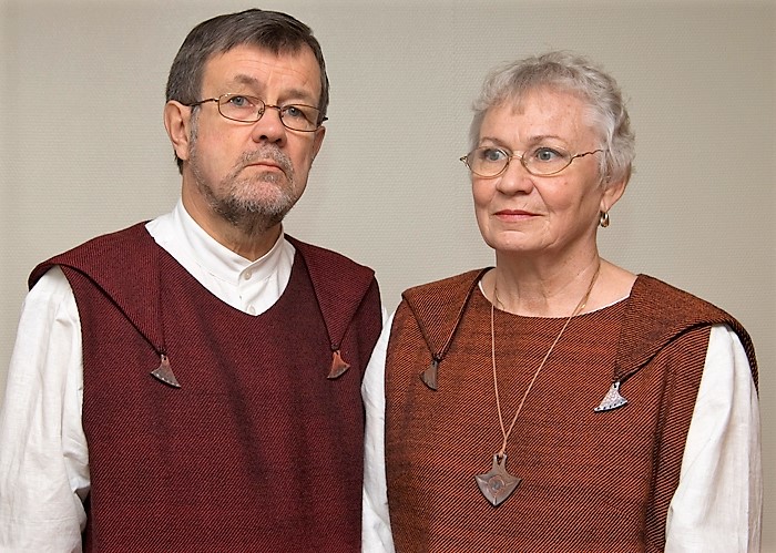 käsityönä. Näille koruille tahdottiin luoda arvokas kehys, joka palvelisi sekä miesten että naisten asuina. Asuihin sovellettiin materiaaleja ja valmistustyylejä, joita tiedetään olleen 1000-luvulla käytössä muiden sen aikaisten hautalöytöjen perusteella.