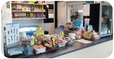 Tarjolla on mm. kahvia, pullaa, virvoitusjuomia, makeisia ja kesällä jäätelöä.